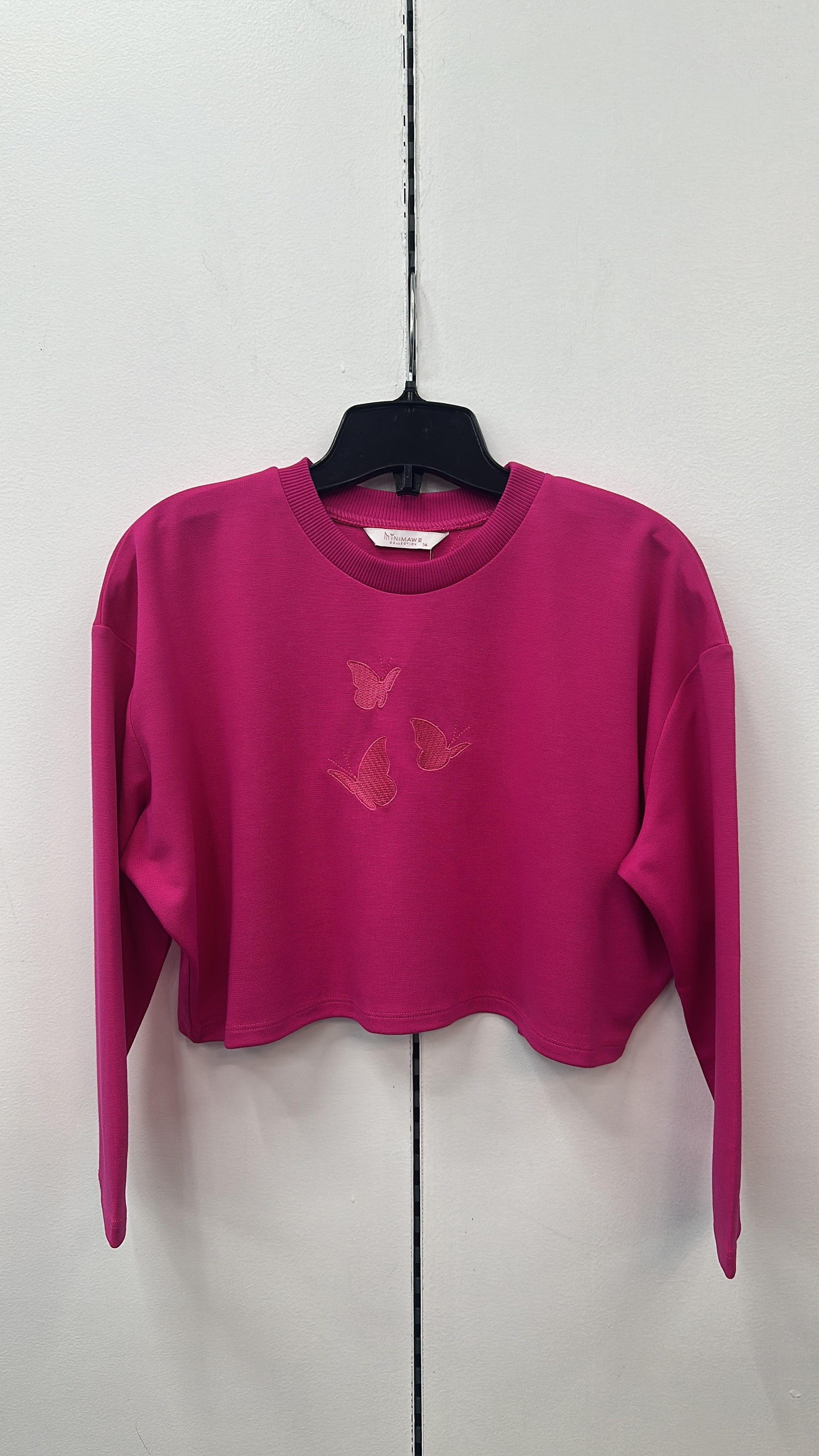 777-372 Embroidery Crop Top, Hot Pink
